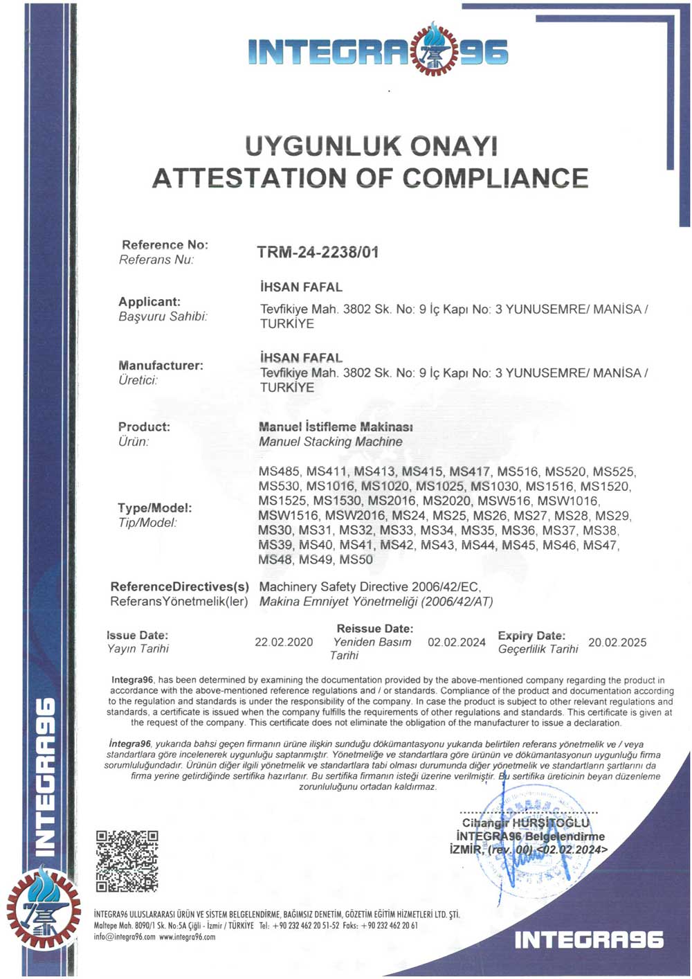 Tüm ürünlerimizin Avrupa Birliği güvenlik, sağlık ve çevre koruma standartlarına uygun olduğunu belgeler.